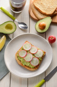 Toast z awokado, truskawki, czekolada i filiżanka kawy