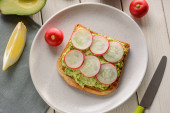 Toast z tłuczonym awokado, pomidorem wiśniowym i ricottą