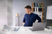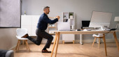 Niepełnosprawna biznesmen chodzenie na parkiecie z Crutches w miejscu pracy