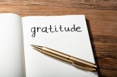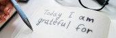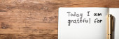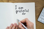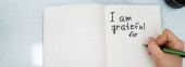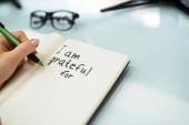 Zbliżenie osoby pisanie jestem wdzięczny za tekst w Notatniku z czarnym markerem