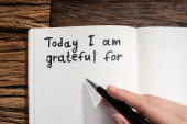 Zdjęcie "Zbliżenie osoby pisanie jestem wdzięczny za tekst w Notatniku z czarnym markerem" może być wykorzystywane do celów osobistych i komercyjnych zgodnie z warunkami zakupionej licencji Royalty-free. Obraz jest dostępny do pobrania w jakości wysokiej rozdzielczości do 5760x3840.