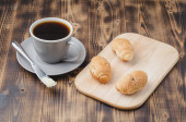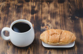 Przerwa na kawę z nożem do masła croissanta i filiżanką czarnej kawy