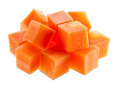 Kawałki marchewki odizolowane na biało. Ze ścieżką wycinania.