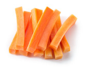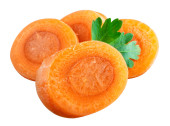 Kawałki marchewki odizolowane na biało. Ze ścieżką wycinania.
