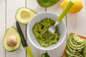 Połówki awokado i tosty z plasterkami. Przekąski i zdrowe odżywianie