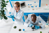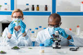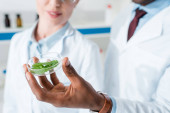 selektywne skupienie się na liściach i afrykańskim koledze z Ameryki przy użyciu mikroskopu