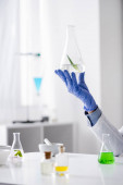 przycięty widok afrykańskiego biologa trzymającego probówkę i rozmawiającego z kolegą