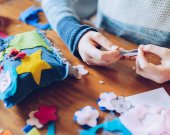 Świąteczna piekarnia. Kobieta robi pierniki, kroi ciasteczka z piernika, widok z góry. Świąteczne jedzenie, proces gotowania, kulinarne rodzinne, świąteczne i noworoczne tradycje