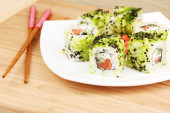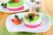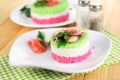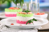 kolorowy ryż na płytkach na serwetki na stół drewniany
