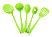 na białym tle naczynia kuchenne z tworzywa