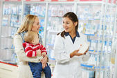 Apteka chemik, matka i dziecko w drogerii