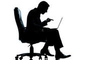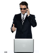 jeden biznes człowiek komputerowych kciuk komputera siedząc w fotelu