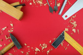 narzędzia stolarskie na białym tle płaskie leżały z przestrzenią do kopiowania.