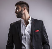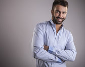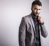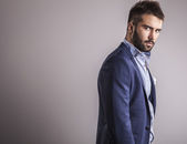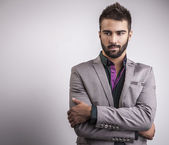 Elegancki młody, przystojny mężczyzna. Studio portret mody.