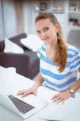 Zdjęcie "Młoda kobieta korzysta z laptopa w biurze tabeli" może być wykorzystywane do celów osobistych i komercyjnych zgodnie z warunkami zakupionej licencji Royalty-free. Obraz jest dostępny do pobrania w jakości wysokiej rozdzielczości do 5760x3840.