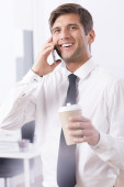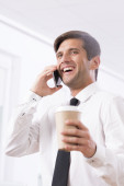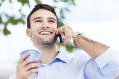 człowiek z kawy i telefon komórkowy