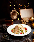 Zdjęcie "Ryby pieczone w migdałach, eleganckie danie na świątecznym stole. Tradycyjne dania świąteczne, świąteczne nakrycia do stołu. Skład horyzontalny." może być wykorzystywane do celów osobistych i komercyjnych zgodnie z warunkami zakupionej licencji Royalty-free. Obraz jest dostępny do pobrania w jakości wysokiej rozdzielczości do 5760x3840.