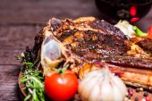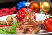 Mięso zmieszane. Grillowane żeberka, kurczak i kiełbaski podawane z pieczonymi ziemniakami