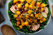 Zdjęcie "Sałatka zimowa lub jesienna z jarmużem i dynią" może być wykorzystywane do celów osobistych i komercyjnych zgodnie z warunkami zakupionej licencji Royalty-free. Obraz jest dostępny do pobrania w jakości wysokiej rozdzielczości do 5760x3840.