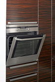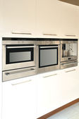 Wnętrze luksusowych drewnianych nowoczesnych szafek z dębu kuchennego