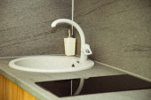 Wnętrze nowoczesnej kuchni i ceramiki zlewozmywak i kran
