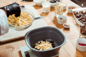 przycięty widok czekolady gospodarstwa białej czekolady chipsy w ręku
