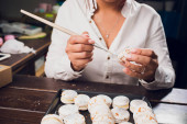 Zdjęcie "przycięty widok szczęśliwy chocolatier gospodarstwa szczotka w pobliżu smacznej czekolady bar z orzechami laskowymi " może być wykorzystywane do celów osobistych i komercyjnych zgodnie z warunkami zakupionej licencji Royalty-free. Obraz jest dostępny do pobrania w jakości wysokiej rozdzielczości do 5760x3840.
