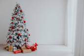 White Christmas tree prezenty i ozdoby świateł girlanda nowy rok