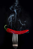 Gorąca papryka chili paląca na widelcu. Koncepcja przyprawy.