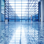 Zdjęcie "Puste, nowoczesne wnętrze biurowca ze światłem słonecznym. Niebieskie stonowane" może być wykorzystywane do celów osobistych i komercyjnych zgodnie z warunkami zakupionej licencji Royalty-free. Obraz jest dostępny do pobrania w jakości wysokiej rozdzielczości do 5760x3840.