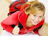 uśmiechający się blond kobieta kontakt telefoniczny