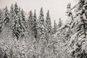 malowniczy widok na śnieżne sosny i białe zachmurzone niebo