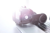 Zdjęcie "Młoda kobieta Projektant stoi w pobliżu miejsca pracy i fotografowanie go na aparat cyfrowy" może być wykorzystywane do celów osobistych i komercyjnych zgodnie z warunkami zakupionej licencji Royalty-free. Obraz jest dostępny do pobrania w jakości wysokiej rozdzielczości do 5760x3840.