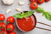 Zdjęcie "Płaska kompozycja świecka z sosem pomidorowym na niebieskim drewnianym tle" może być wykorzystywane do celów osobistych i komercyjnych zgodnie z warunkami zakupionej licencji Royalty-free. Obraz jest dostępny do pobrania w jakości wysokiej rozdzielczości do 5760x3840.