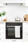 Zdjęcie "nowoczesne białe wnętrze kuchni z garnkiem na indukcyjnej płycie grzewczej w pobliżu zakładu w pobliżu cegły ściany" może być wykorzystywane do celów osobistych i komercyjnych zgodnie z warunkami zakupionej licencji Royalty-free. Obraz jest dostępny do pobrania w jakości wysokiej rozdzielczości do 5760x3840.
