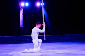 niebieskie światło w pobliżu akrobaty występujące na arenie cyrku