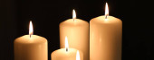 płonące świece świecące w ciemności odizolowane na czarnym, panoramicznym ujęciu