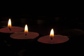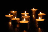 płonące białe świece świecące w ciemności, panoramiczne ujęcie