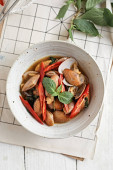 Zdjęcie "Tajskie jedzenie kurczaka zielony curry na drewnianym tle." może być wykorzystywane do celów osobistych i komercyjnych zgodnie z warunkami zakupionej licencji Royalty-free. Obraz jest dostępny do pobrania w jakości wysokiej rozdzielczości do 5760x3840.