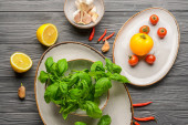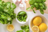 Zdjęcie "Składniki sosu pesto na drewnianym tle" może być wykorzystywane do celów osobistych i komercyjnych zgodnie z warunkami zakupionej licencji Royalty-free. Obraz jest dostępny do pobrania w jakości wysokiej rozdzielczości do 5760x3840.
