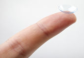 Szczegóły palców z soczewką kontaktową z izolowanym białym tłem