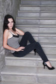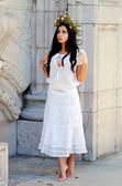 hiszpanin kobieta opierając się na kamiennym sklepieniem