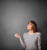 Młoda piękna pani z ręcznie rysowane obliczenia i ikony