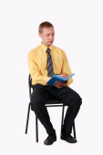 Zdjęcie "Młody człowiek czyta książkę.." może być wykorzystywane do celów osobistych i komercyjnych zgodnie z warunkami zakupionej licencji Royalty-free. Obraz jest dostępny do pobrania w jakości wysokiej rozdzielczości do 5760x3840.