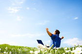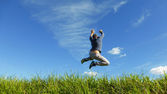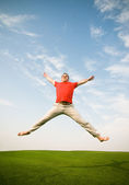 wolności - biznesmen, skoki na zielonej łące z lato