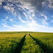 natura tło, wiosenny poranek... pole zielone trawy i pochmurne niebo