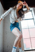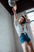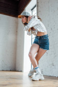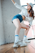 selektywne skupienie atrakcyjnej tancerki pozowanie w studio tańca