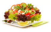 Sałatka jarzynowa miska na białym tle