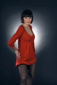 piękna dziewczyna brunetka pozuje w studio