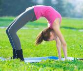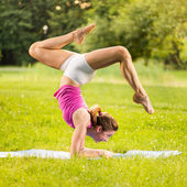 kobieta robi rozciągających ćwiczeń fitness. asan jogi